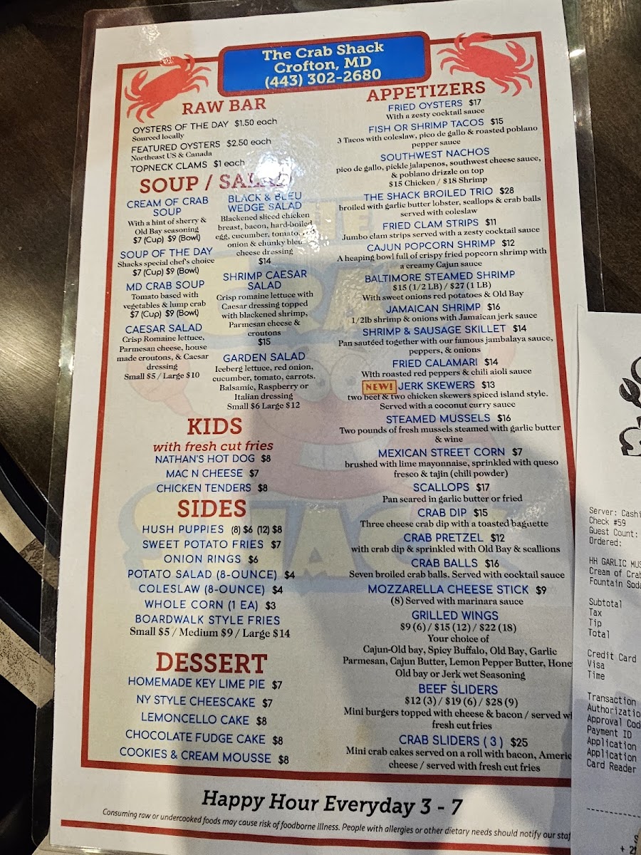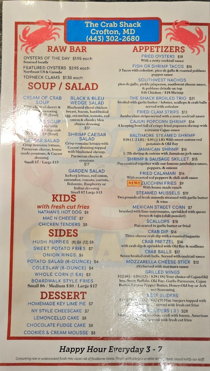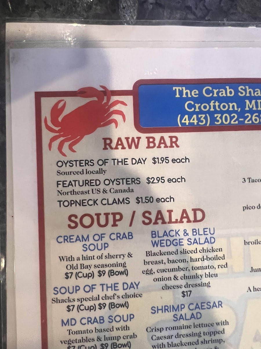 Sourced from the Northeast coast. Served with spicy cocktail sauce & saltine crackers