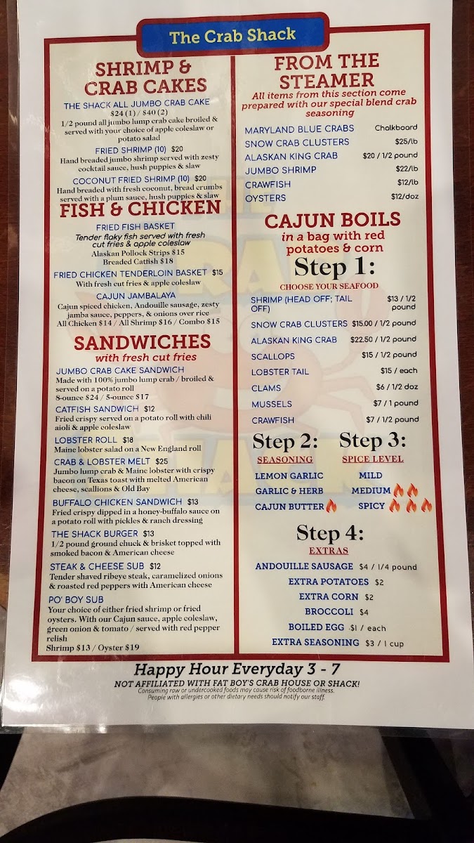 Cajun boil with options for butter: single or mixed flavors, including garlic, Cajun, lemon. Choice of spice level from mild to spicy, or unseasoned.